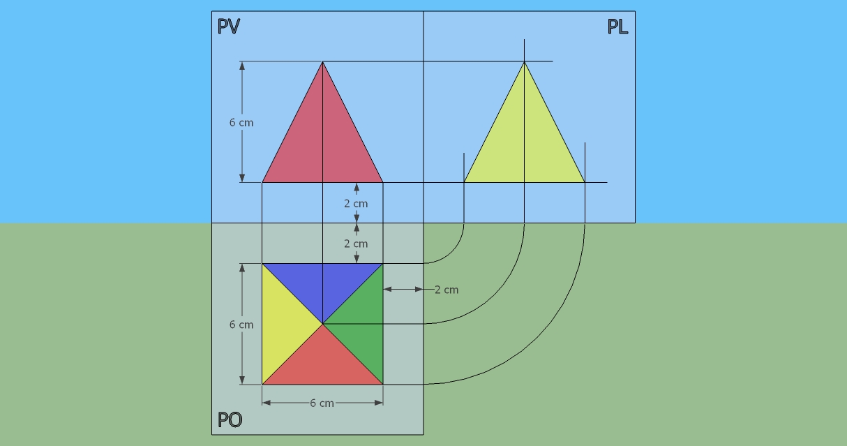 Proiezioni ortogonali di una piramide a base quadrata
