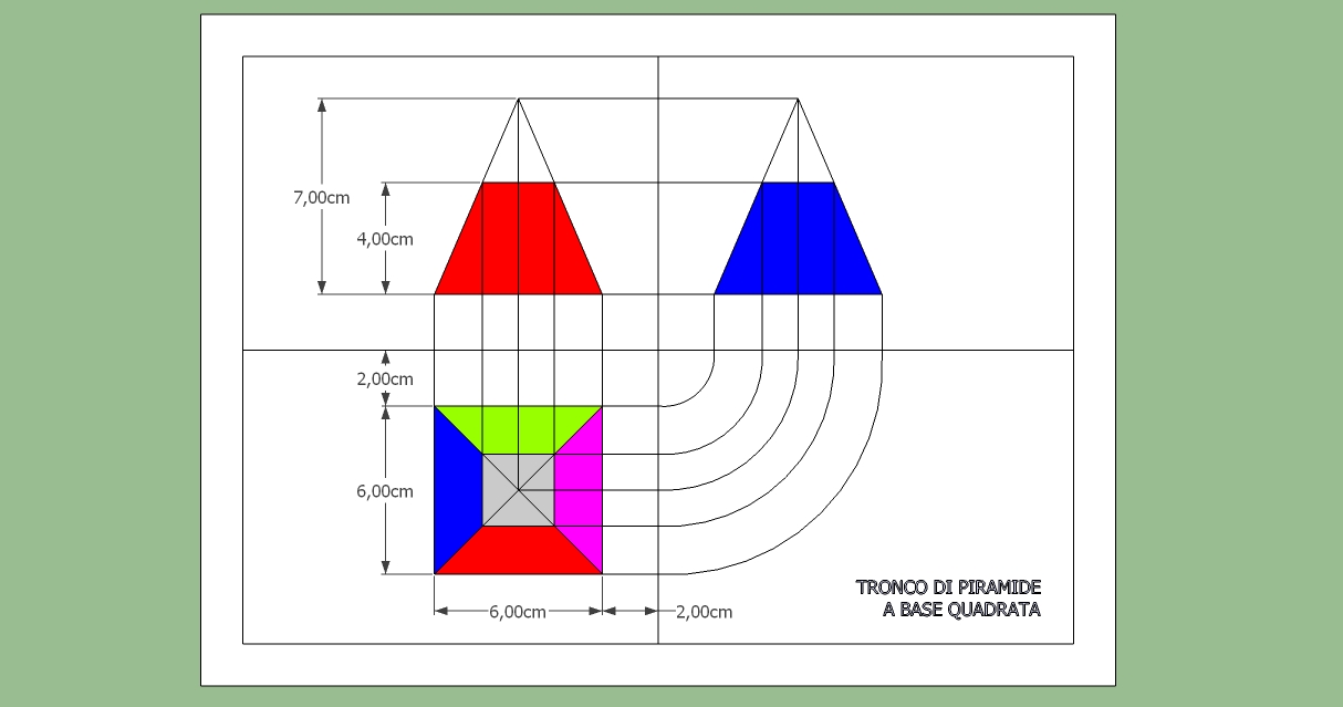 Proiezioni ortogonali di un tronco di piramide a base quadrata